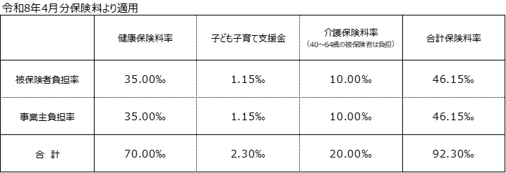 また、子ども子育て支援金につきましては、国が定める率により2.3‰となり、令和8年4月分より実施いたします。